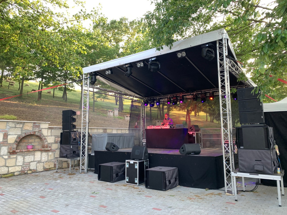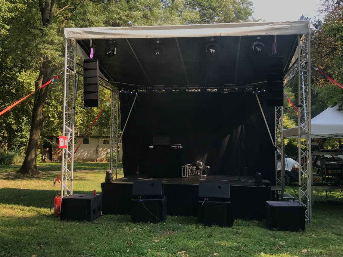 A 4*5m színpadot korláttal, lépcsővel és színpad szoknyával szoktuk a rendezvényeken rendelkezésre bocsátani.